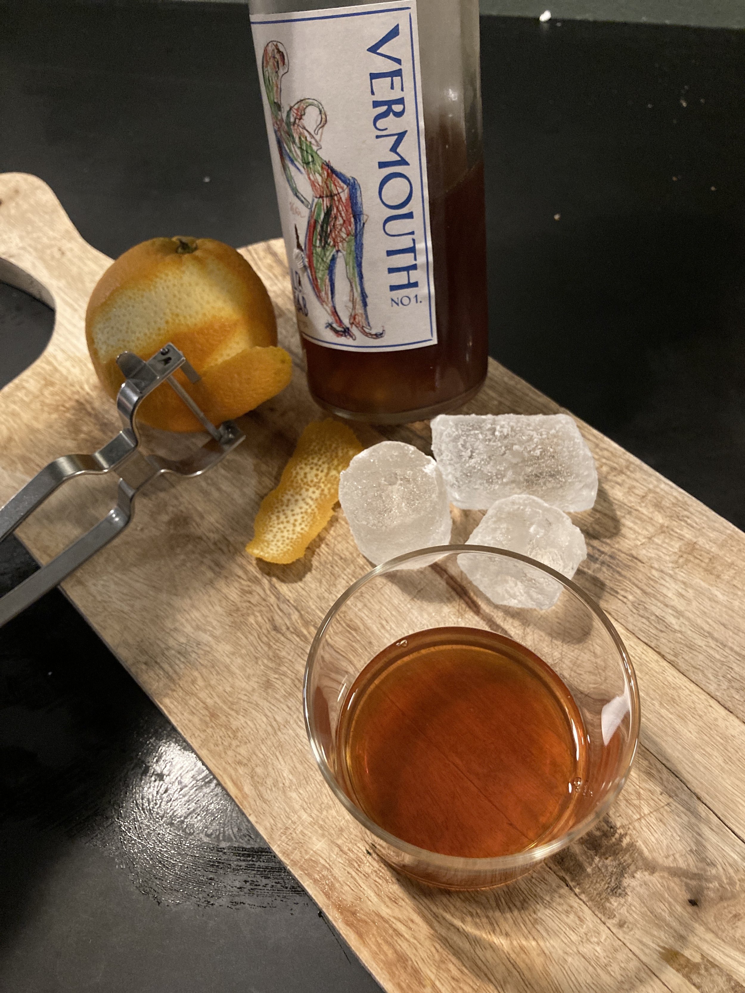 Vildskab Vermouth No.1 er sød og vi foretrækker at smide en skive citrusfrugt i glasset sammen med isterninger.